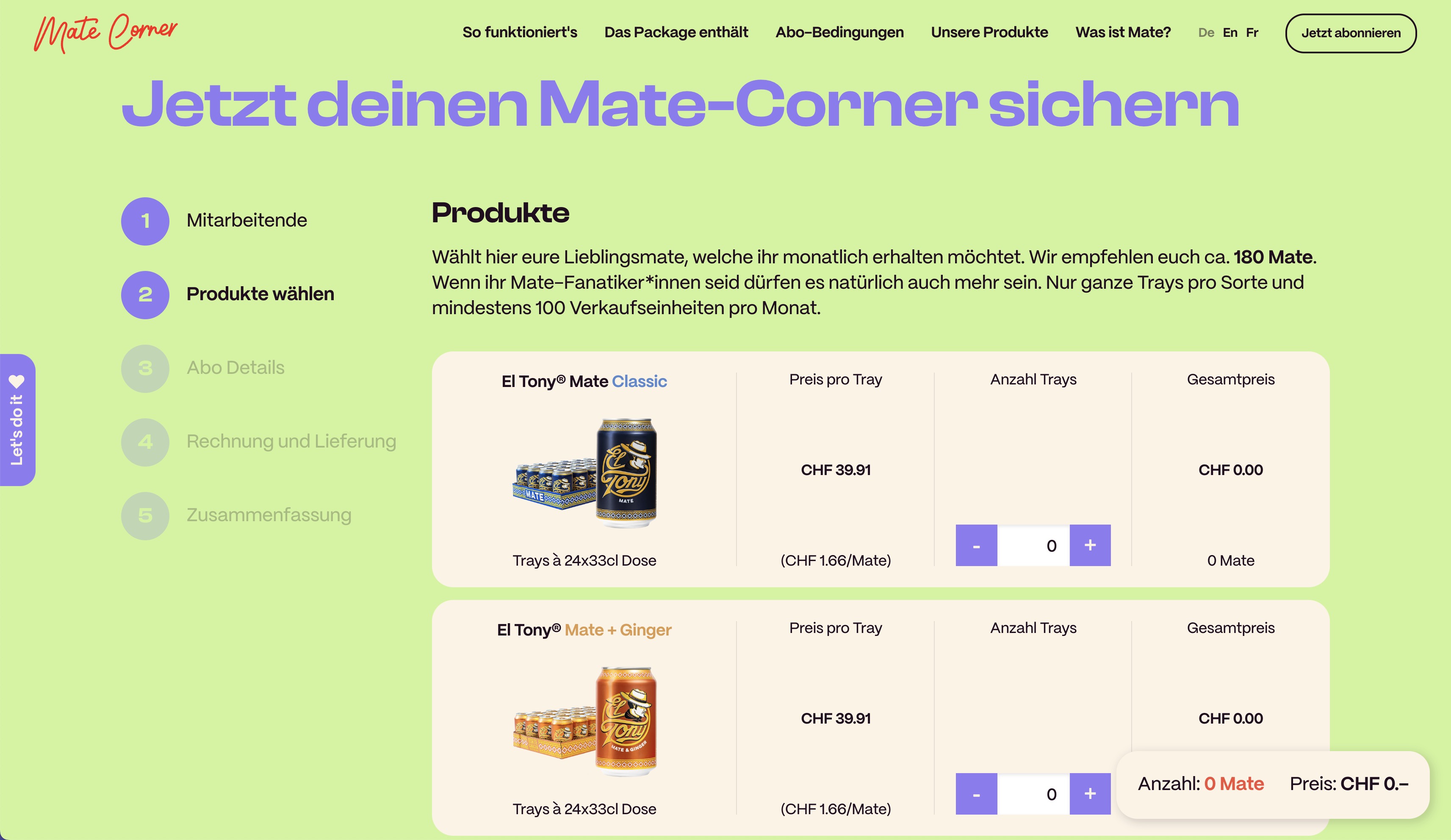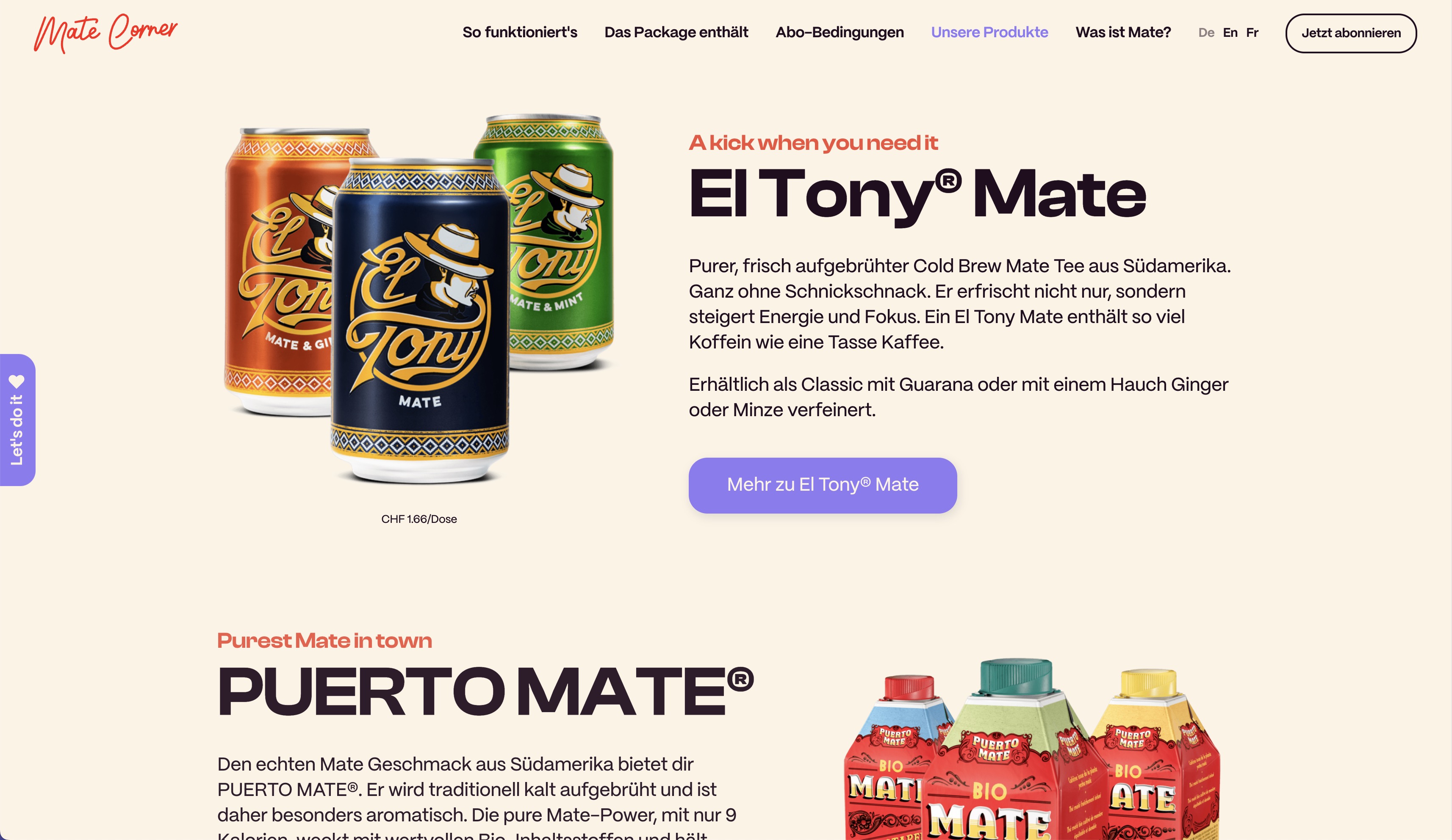 El Tony® Mate and PUERTO MATE® subscription (CH)